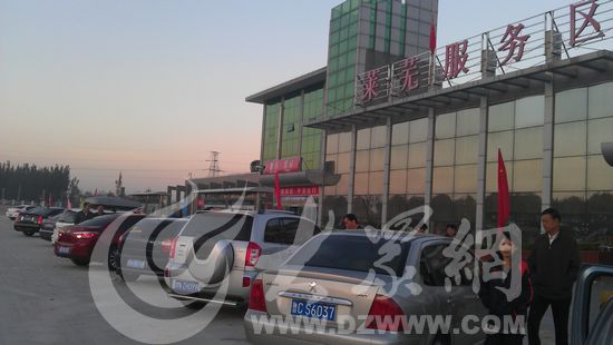 今天上午6點(diǎn)多,萊蕪服務(wù)區(qū)內(nèi)的小型客車已經(jīng)停了滿滿兩排。記者 張帆 攝