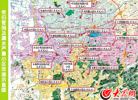 濟(jì)南17處低壓片區(qū)改造示意圖。