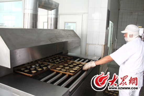 月餅被送入烤箱。