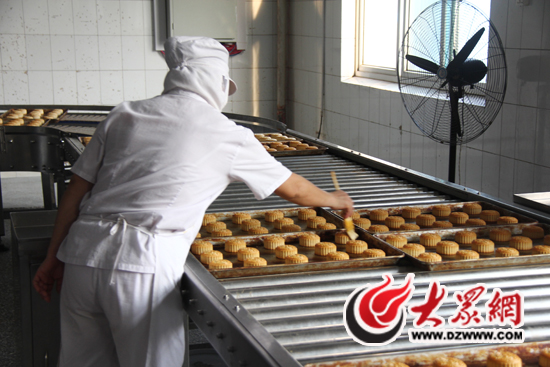 大眾網濟南9月19日訊記者 馬鑫)餡大皮薄、金黃誘人。在中秋節即將到來之際,濟南市各大食品廠正開足馬力組織月餅生產。為了確保節日市場上月餅的衛生安全,19日下午,濟南市人大常委會副主任段青英帶領部分人大代表前往濟南益康食品廠監督、視察,月餅生產企業也首次通過媒體,向外界展現了一個月餅從包餡到入袋的整個生產流程。