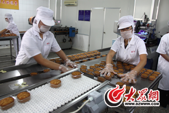 餡大皮薄、金黃誘人。在中秋節即將到來之際,濟南市各大食品廠正開足馬力組織月餅生產。為了確保節日市場上月餅的衛生安全,19日下午,濟南市人大常委會副主任段青英帶領部分人大代表前往濟南益康食品廠監督、視察,月餅生產企業也首次通過媒體,向外界展現了一個月餅從包餡到入袋的整個生產流程。