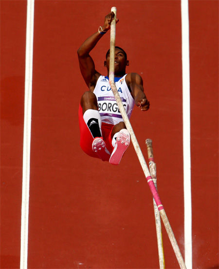 古巴選手拉佐-博格斯撐桿跳時桿子斷成三截