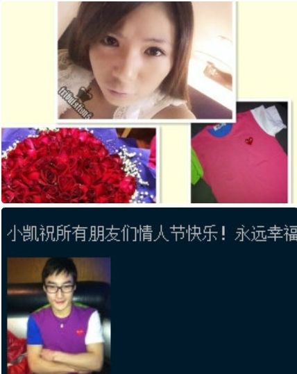 情人節(jié),何姿發(fā)了一條甜蜜微博,除了她的大頭照,還有一捧漂亮的玫瑰和一件川久保玲的衣服,而秦凱在情人節(jié)當(dāng)天21點(diǎn)發(fā)了一條微博:小凱祝所有朋友們情人節(jié)快樂(lè)!永遠(yuǎn)幸福!配圖上秦凱穿的就是何姿那件衣服,同品牌只不過(guò)同款不同色。很多網(wǎng)友在看到這樣的照片后表示,這就是情侶裝啊,希望他們永遠(yuǎn)幸福!