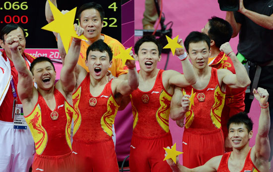 北京時間7月31日凌晨,2012年倫敦奧運會產生體操項目的首金。在男子團體決賽中,資格賽排名第六的中國隊完美發揮,所有選手都沒有出現重大失誤,最終衛冕成功。北京時間7月31日凌晨,2012年倫敦奧運會體操男子團體決賽在北格林尼治競技場結束,預賽中表現不佳僅列第六位的衛冕冠軍中國隊在決賽中頂住壓力發揮出高水平,六個單項18套動作0失誤!最終他們以總成績275.997分力壓老對手日本隊實現衛冕,為中國體操隊在本屆奧運會上實現開門紅,日本隊申訴成功獲得亞軍。