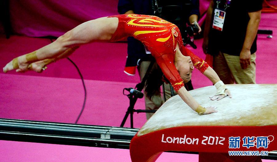 2012年7月31日,在倫敦奧運(yùn)會(huì)體操女子團(tuán)體決賽中,中國隊(duì)以174.430分的成績獲得第四名。圖為,中國隊(duì)選手鄧琳琳在跳馬比賽中。新華社記者 王建華 攝