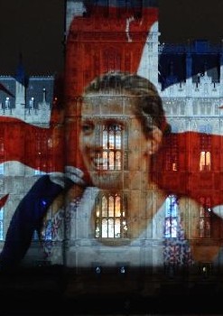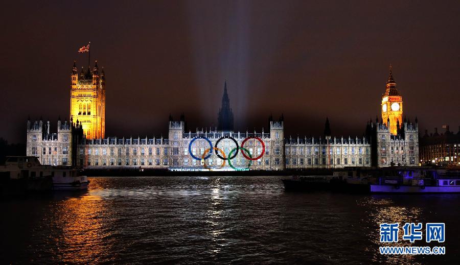 7月27日,第三十屆夏季奧林匹克運(yùn)動(dòng)會(huì)開幕式在倫敦奧林匹克公園主體育場(chǎng)“倫敦碗”舉行。這是開幕式當(dāng)天,英國(guó)議會(huì)大廈的墻上打出奧運(yùn)五環(huán)標(biāo)志。新華社記者 凡軍 攝