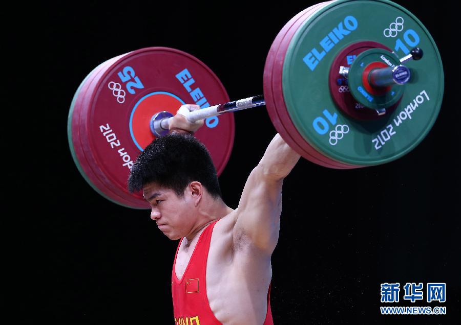 7月31日,中國選手林清峰在比賽中。當日,在倫敦奧運會舉重男子69公斤級比賽中,中國選手林清峰奪得冠軍。