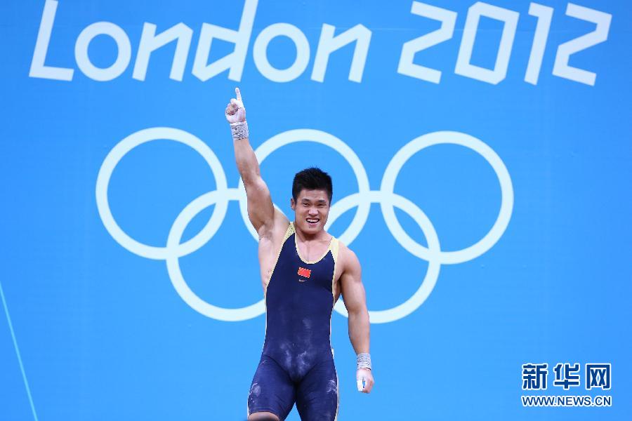 8月1日,中國(guó)選手呂小軍慶祝勝利。當(dāng)日,在2012年倫敦奧運(yùn)會(huì)舉重男子77公斤級(jí)的比賽中,中國(guó)選手呂小軍以379公斤的總成績(jī)奪金,并打破總成績(jī)世界紀(jì)錄。 新華社記者陳建力 攝