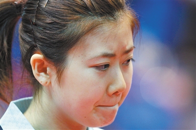 東亞運(yùn)動(dòng)會(huì)乒乓球女單1/4決賽,福原愛(ài)0比4負(fù)文佳,強(qiáng)忍淚水。
