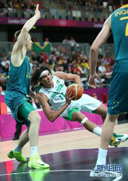 新華網(wǎng)快訊:7月29日,在2012倫敦奧運會男子籃球小組賽B組的一場比賽中,巴西隊以75比71戰(zhàn)勝澳大利亞隊。