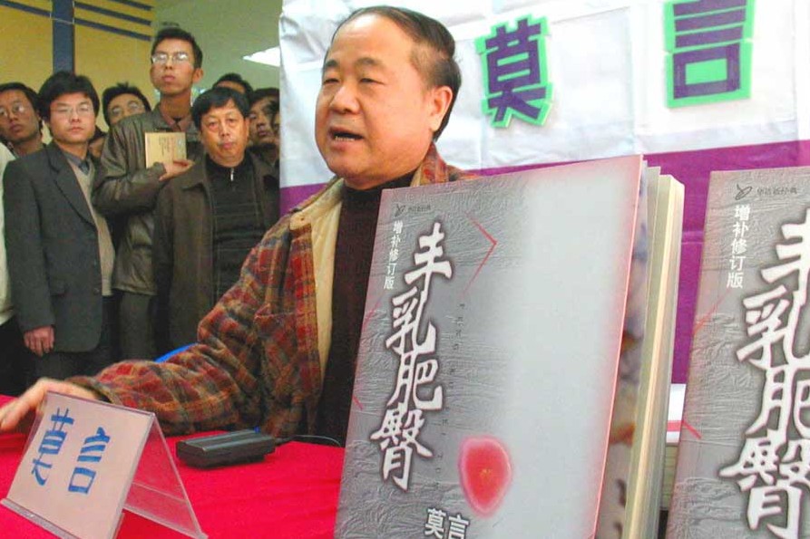 2012年度諾貝爾文學獎揭曉,中國作家莫言獲獎,成為首個獲得諾貝爾文學獎的中國籍作家。莫言原名管謨業,1955年生于山東高密,1981年開始創作,其作品深受魔幻現實主義影響,代表作有《紅高粱》、《檀香刑》 、《豐乳肥臀》等,其中《蛙》獲第八屆茅盾文學獎。