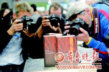 11日,在德國法蘭克福國際書展,攝影記者拍攝莫言小說《檀香刑》德文版。 新華社發