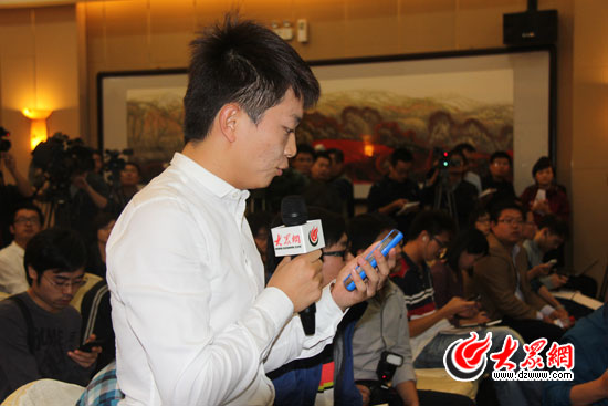 莫言接受大眾網記者提問。