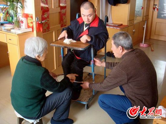 為了全身心地照顧好王群,夫婦倆沒有再要孩子。他們學會了針灸、按摩、刮痧等治療手段,每天為他進行恢復性鍛煉。王群漸漸長大了,王華堂專門為他設計制作了一個組合式多功能輪椅,不但解決了王群吃飯、大小便等難題,還方便每天上床、下床。在照顧王群的同時,王華堂還要照顧家里的四位老人,生活過得特別清苦。全家人省吃儉用,把每一分錢都攢給了王群。刮痧可以溫暖孩子沒有活力的雙腿,他們一咬牙一次買了6盒刮痧油;為了給王群補鈣,幾十塊錢的魚肝油從未間斷過。在王華堂夫婦的精心照顧下,王群很少得病,身上也從沒有長過褥瘡。