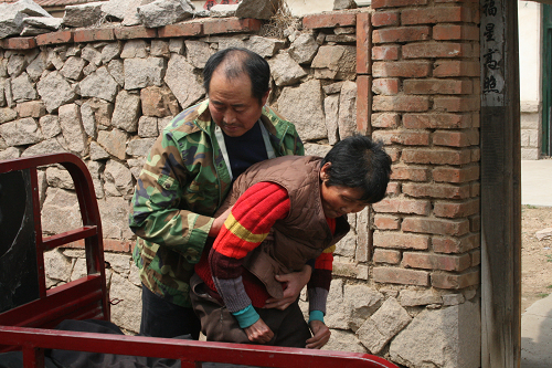久病床前無孝子,更何況是夫妻。老任用他20余年的相濡以沫做出了反證。因為任守田要到農地里干活,妻子又時刻需要人照料,兩個孩子上學,家中又沒人可以幫上忙,于是任守田便找來拖車,放上被褥,把妻子拉到地頭,也是讓妻子散散心,自己邊干農活,邊照顧妻子,就這樣一晃就是20年,期間的風風雨雨,說不盡的心酸與愁苦,只有老任知道,但他從沒發過一句牢騷,從沒有一句怨言。直到去年,已經56歲的老任感覺拖車越來越沉重,到村西嶺上的坡就拉不上去了。沒辦法,雖然家徒四壁,他咬咬買了輛舊三輪摩托,為的是照顧好妻子。這是家中唯一值錢的東西。