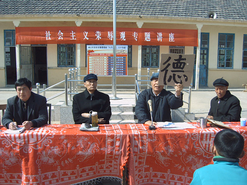 這是后村鎮“五老”宣講團的帶頭人鄭世耀義務宣講“榮辱觀”的一個鏡頭。