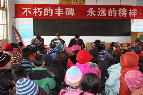 理論宣講是一項艱苦細致的工作,要經常奔波在不同地方、不同單位之間。剛退休時,鄭世耀的宣講范圍比較狹窄,僅僅是他擔任校外輔導員的所在地——后村鎮的20余所學校;宣講內容也比較單一,主要是革命傳統教育。為了讓全鎮的中小學生更好的繼承革命先烈的遺志,他冒著嚴寒酷暑,廣泛收集資料,進行實地調研,將參加日照暴動的鄭天九等革命志士的事跡進行整理,編成宣講教材。