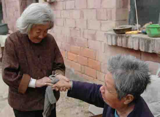 劉玉榮給兒媳邢和山擦手