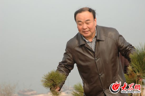 孫業(yè)潤(rùn)在擁翠山上與員工們一道栽植黑松