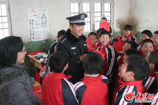 高占雄在河口區義和鎮六頃村小學給學生們宣傳安全防范常識。