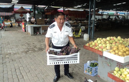 談起自己的工作,劉康同志說:老父親一直教育我有份工作就該知足,就該本分的干好工作,穿上制服,就要為民服務,干的工作要讓別人信服。這樸實無華卻又蘊含哲理的話自此成了劉康同志的人生理念,成了融化到骨子里的錚錚誓言。他用自己踏踏實實的工作踐行著這條信念,十幾年如一日地堅守與堅持,在平凡的工作崗位上做出了不平凡的業績。調入市場辦以后,劉康同志被分配到縣城黃海東路農貿市場,具體負責該市場的所有管理工作。市場管理工作是一項繁瑣而特殊的工作,需要極大地耐心和細心,每天早上四點多,他就著裝整齊準時來到市場,疏導市場外擁擠的人群,引導商販有序進入。做完這些就開始不停地走、不停地轉,規范市場秩序、清理市場衛生,每一項工作都不放松。