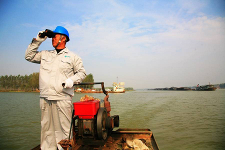 高樓鄉(xiāng)南北狹長120華里,共16個行政村,4400戶人家零散地分布在53萬畝的水域里。一成不變的天空,茫茫無際的湖面,三只就能炒成一盤菜的蚊子,找一戶漁民借宿,剝一個青皮就幾口煎餅咸菜果腹,劉師傅每天在艱苦條件下開始自己一天的工作。劉師傅介紹,冬天,湖面結冰,船到不了的地方只能“走冰”,手里得抓根木棍,萬一掉進冰窟窿里去能靠木棍卡住。下水前,得吃幾口辣椒暖身,上船后換身干衣服,用棉被捂一會就繼續(xù)到下一戶去。夏天,天上一個太陽,曬著;水里一個太陽,蒸著,鐵皮船被烤得能把鞋底燙化。 地圖有死角,巡線卻不能遺漏。這是劉師傅經常掛在嘴邊的一句話。設備、線路在哪里,劉師傅就去哪里,從夏到冬,伴著“突突”的引擎聲,劉師傅用心管理著轄區(qū)內的電力設備和線路,用真誠服務將400多戶零散居住的漁民緊緊地聯(lián)系到一起。除了正常的線路維護、抄表收費工作以外,還多了一項任務,當起了漁民如何安全用電的老師。安燈泡、換保險、裝開關,劉師傅把供電服務做到了每艘漁船上。