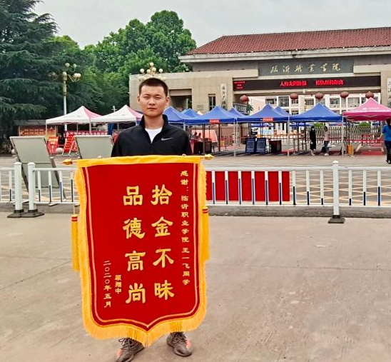 “小兄弟,太感謝你了,我也不知道該怎么報(bào)答你……”5月27日一早,失主顏先生將“拾金不昧 品德高尚”的錦旗送到臨沂職業(yè)學(xué)院2019級(jí)建筑工程技術(shù)三班學(xué)生王一飛的手上,對(duì)王一飛拾金不昧、助人為樂(lè)的善舉表示深深的感謝。