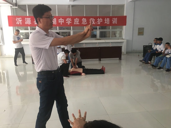 2019年9月5日,沂源縣河湖中學上午第二節課后,學生們正在進行體育大課間的鍛煉。突然,初四年級一名女生暈倒在地,不省人事。正在陪跑的老師們迅速圍了過去,看到這名女生趴在地上一動不動,呼叫也沒有任何反應,大家一下就慌了神,站在原地束手無策。