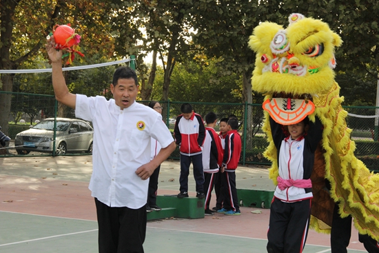 目前,徐高義除負責隊員們的日常訓練以外,還擔任著實驗中學等好幾所學校的特聘武術教練。今年9月,稻莊鎮實驗中學正式給徐高義發放聘書,他成了學校的武術教練。每周,他都會來這里教學生們學習武術、練習舞獅,讓傳統文化和非遺傳承走進學校、走進課堂。