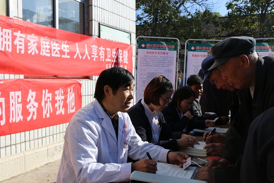 蔣行山(左一)下村參加家庭醫(yī)生服務(wù)團(tuán)隊(duì)簽約