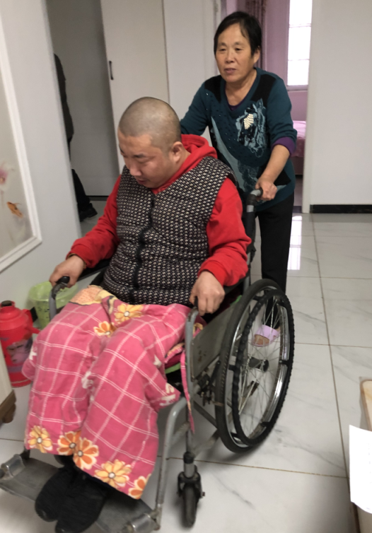 “以前冬天沒暖氣,兩個孩子不能活動怕冷,我給他們每個人都做了30多條棉褲,每條棉褲都像棉被那么厚。他們大小便都不能自理,經常把棉褲、被褥弄臟,我每天給他們換幾條、經常拆洗,但就是這樣,兩個孩子的腿上凍得都是黑色的泡。”提起這些,周素真難掩心酸。“前年我們回遷到花園社區了,冬天有暖氣,孩子也沒那么受罪了。”說到這里,她又笑了起來。“孩子長大了,我歲數也越來越大,已經抱不動他們了,以后我們歲數大了,可能照顧他們就更難了。”周素真說。