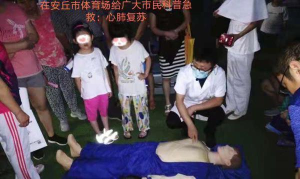 王福良十分熱愛醫生這份職業,在醫院,作為腦病科的副主任,他在科室舉辦健康大講堂,給患者科普腦卒中的預防。他還是安丘市衛健局的科普巡講員,每年多次到社區普及高血壓、糖尿病的防治。業余時間,他還到安丘市體育場為廣大市民科普心肺復蘇的急救知識。