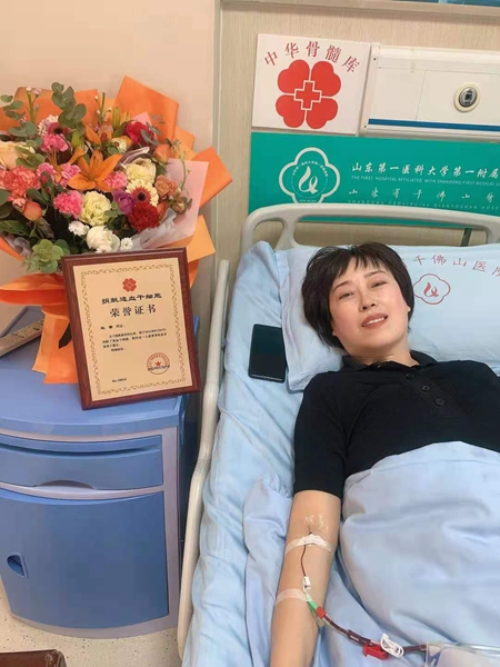 家人的支持也給了趙雷莫大的動力,經過一系列配型、體檢后,1月22日上午,趙雷從巨野出發,前往濟南千佛山醫院進行造血干細胞采集捐獻。從1月23日開始,趙雷每天都需要注射兩次動員劑,一直到27日早晨6時,注射完最后一支動員劑。上午9時,開始采集造血干細胞,經過了4個多小時采集完成。陪著她一起去濟南的志愿者馬志紅說:“真是令人心疼!當時,由于短時間大量鈣流失,導致她的手指抽筋都掰不開了,采集期間還注射了四只鈣,采集完她的胳膊和腿都是麻木的,恢復了好長時間才能站立行走。”