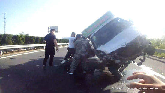 在高速路上多停一秒,就意味著多一分危險。在將兩名被困人員救出后,孟凡勇、王延斐等人立即對事故點的被堵車輛進行疏導(dǎo)。隨著一輛輛車駛過,事故點的交通秩序很快被恢復(fù)。