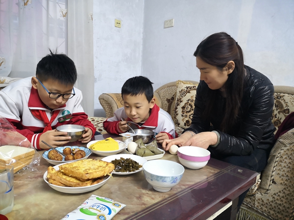 此后,李祥霞每天早上6點起床,照料姜澤坤和兒子吃飯。上學時,為了不讓姜澤坤在校門口多等10分鐘,她讓兒子自己去上學,自己卻去送姜澤坤。長時間的相處,姜澤坤已經習慣每天早上被李祥霞“催”著吃飯,被她往嘴里“塞”雞蛋,也會不自覺的會喊她“媽媽”。在李祥霞心里,只要接過了這個擔子,就要當好這個“媽媽”。