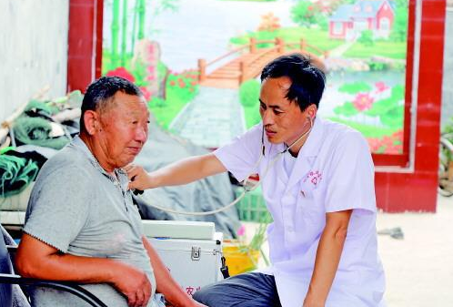 炎炎夏日,在魚臺縣張黃鎮張集村,村民們總能看到李家立趕著去村民家看病的身影。由于身體原因,他的左腳腳跟與地面的距離達到了十多厘米,只能用腳尖著地,走起路來非常艱難,走上一會兒,左腿就會感覺非常勞累,不聽使喚,豆大的汗珠從李家立的頭上、臉上、脖子上一直往下掉。像這樣的出診,對于李家立來說是家常便飯。村里老人多,不少人都患有慢性病,需要他形成檔案,長期觀察治療。每一次出診,李家立都盡可能多走幾家、多看幾位老人。因為李家立就像大家的“私人醫生”,大家也對李家立非常信任和感激。