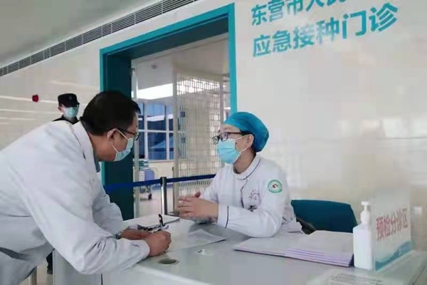 謝曉蕾在市人民醫院新冠疫苗接種點進行預約分診工作
