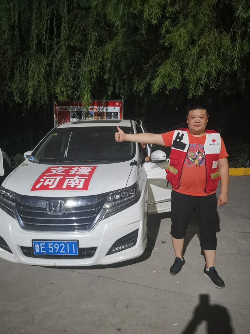 近日,河南遭受暴雨,1300多萬人受災的消息,牽動了全國億萬人民的心,張振楠也不例外。“從知道河南暴雨受災后,我就一直想做些什么。”張振楠說,“直到看到一位村支書因物資缺乏每天只能給志愿者發放一瓶礦泉水,而滿含眼淚的給大家道歉時,我在家就呆不住了,腦子里就一個念頭,我要去支援河南!”由于怕家人擔心,起初這個想法,張振楠并未敢和家人提起。7月21日一早,張振楠便組織起了7名“青年突擊隊”隊員趕往臨沂購買物資,22日上午,他便和隊友駕駛著三輛滿載救生衣、礦泉水、方便面等救援物資的車,火速的趕赴河南,參加救援。物資送達目的地后,張振楠發現災情遠比想象中嚴重的多,于是他當即決定留下來,并向河南新密紅十字會遞交了《請戰書》,請求奔赴一線。在河南擔任志愿者,幫助救災期間,他還不忘繼續聯系家鄉的愛心人士捐贈救援物資。