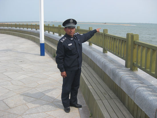“大約是午后一點半左右,我在河清島體育場值班巡邏,從東門往西門轉,我進西門時還沒看到有個小姑娘在海邊玩。”張本初告訴記者,可沒多久,他和在西門值班的同事孫振海就聽到了傳來的呼救聲:“救命啊,我不會游泳。”