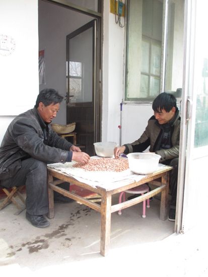 孫永客和兒子孫浩在撿花生