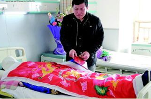 “先是在濰坊各大醫院住院檢查,結果都找不到嘔吐的原因,打針也只能打補充營養的針。后來,兒子的病越來越嚴重,有時候會出現肚子疼的癥狀。醫院提出給他做腸鏡檢查,但是一做才知道,有一段腸子已經基本堵塞,只有毛衣針那么細,腸鏡根本做不了。”李玉山說去年11月中旬,兒子住進了濰坊市人民醫院,通過手術取樣化驗,發現結腸部位出現惡性腫瘤,并且已經到了結腸癌晚期。