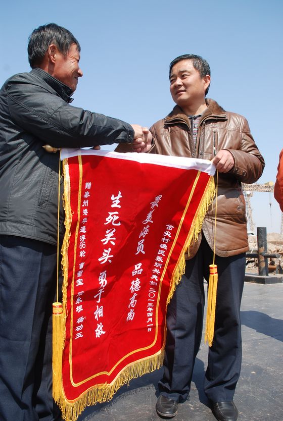 曹留寶救人后名字也沒留就匆匆離開,獲救的張炳興總覺得這是一塊心病,但又不知是本地船還是外地船,夫婦二人打聽了半個多月,才最終從老鄉(xiāng)們那里打聽到曹留寶。“終于讓我們找到你了,恩人!你的救命之恩我們一輩子都報答不了。”42日,張炳興夫婦,把印有“生死關頭,勇于相救,最美海員,品德高尚”的錦旗送到了“最美船員”曹留寶手中。