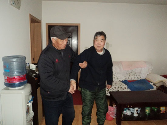 為了幫助魏福順增強體質,能夠堅持進行體能恢復鍛煉,馬貴明經常鼓勵他多鍛煉、多活動。天氣好時,馬貴明就陪同魏師傅出門散步、走路;遇到天氣不好時,馬貴明就在家給他按摩、推拿、拔火罐,攙扶著魏師傅在家里鍛煉。魏福順的病情需要常年吃藥,馬貴明就經常到醫院給他抓藥。幾年下來,馬貴明已經成了魏福順師傅的依靠和拐仗。魏福順因病記性差,出門時不是忘了帶鑰匙,就是忘了關門,或者回來時忘了拿凳子,經常丟三拉四。有一次,他出門鍛煉時走失了,該吃晚飯了還未見回來,他老伴急得坐立不安。馬貴明得知后,二話沒說,騎著三輪車走遍附近他經常去的地方,終于找到了他,把他安全送到家中。還有一天中午,魏福順的老伴病情加重,住進勝利醫院,剩他一人在家。馬貴明遛彎回來時,在他家門口聞到一股撲鼻的天然氣氣味,就立即敲開魏福順家的門,發現爐火滅了,氣閥門沒關,只聽見天然氣“絲絲”往外冒的聲音,氣味熏天,幸虧馬貴明及時趕到,才避免了一場事故。