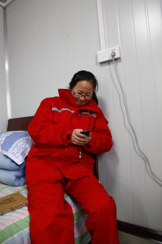 2011年3月,劉艷玲不顧家人反對、朋友勸阻,主動要求跟隨30939隊外闖勝利西部(新疆)新區。初到新疆,一場大雪迎接了剛下火車的她,捂著凍得通紅的鼻子,劉艷玲來不及休息就匆匆趕往新井場。新疆晝夜溫差二十多度,早晨穿著棉大衣,到了中午氣溫就上升到三十多度,由于不方便換衣服,劉艷玲捂出一身痱子。不僅如此,她還因水土不服導致身體過敏,兩個月不到就瘦了十幾斤。為了盡快適應惡劣的施工環境,她積極向男同志看齊:衣服難換,她就學蒙古人,剪下棉衣袖子縫上拉鏈,熱了就把袖子摘下來;洗澡不方便,她就夜里12點后等男職工洗完再去;沒有“閨蜜”說悄悄話,她與男同事成了鐵哥們。即使在井場上看到毒蛇和蜱蟲,她也能做到鎮定自若,繼續工作。