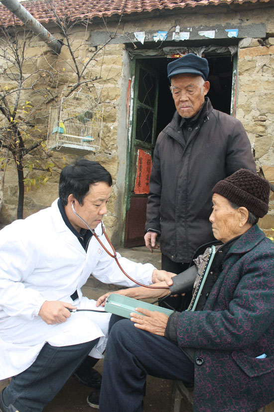 除了坐診、出診外,邵澤金還從事公共衛生服務,為居民建設健康檔案就是其中一項重要內容。為了盡快完成這項工作,邵澤金針對不同的人群,采取了不同的采集信息的方式。對于行動便利的健康人群,集中到診所采集信息;對于行動不便的老人或病患者,他就帶著《居民健康檔案》入門進戶地采集;對于短期外出務工的村民,則盡量利用他們節日返家的時機進行信息采集;對于長期在外務工的村民,則采取電話聯系的方式讓他們到當地衛生室進行健康普查,然后把信息反饋過來。就這樣,一套轄區內1500余人的包含身高、體重、血壓、血糖等基本信息的村民健康檔案就建立起來了。邵澤金又根據村民病情、年齡、性別、婦幼保健等做了進一步的整理歸類,掌握了村民的真實的健康狀況。