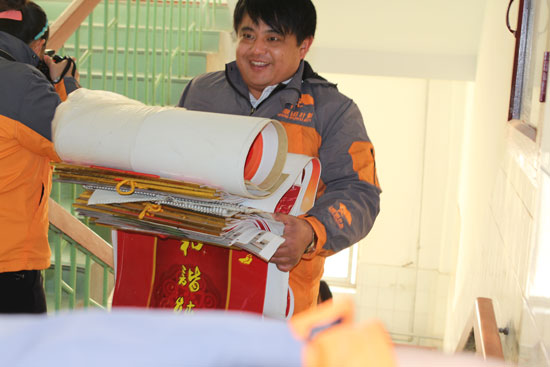 他心系山那邊孩子。無論是沂蒙山走訪貧苦孩子,還是在募捐圖書、文具的活動中,每一次志愿行動他都很賣力,分揀圖書、衣服,打包、裝車,什么臟活累活搶著做,他始終相信“為了孩子,我們可以做得更好!辈粌H僅是對孩子,他對周圍的老人,也老吾老以及人之老。冬天為缺衣少物的老人送棉被,夏天為老人送去蚊帳、驅蚊水。他與義工們每月平均兩三次深入到各個敬老院,為老人查體、表演文藝節目、陪老人聊天下棋,為老人包餃子……2013年7月夏天,董集敬老院里笑聲不斷,曲勇泉聯系的贊助單位給老人們帶去了3D電影。