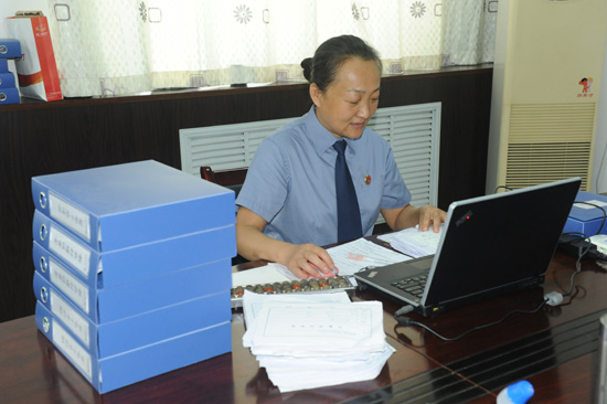 她的“站”要從1994年7月說起。那是一個伴著“知了”聲的酷暑,宋尚環和往常一樣騎著大28自行車去辦案了。然而,誰也沒料到,宋尚環遭遇車禍了。當她醒來的時候,看見醫生診斷書赫然寫著“第五腰椎和尾骨骨折”,她的第一句話竟是:“等我給村民們作完筆錄回來再治,讓我出院!”在領導、同事和醫生的強制要求下,宋尚環在醫院接受了治療。可是,當她聽來看望的同事說案件進入審判環節后證言發生變化,又不安生了:“必須重新固定證據才行,我去協助查賬,我要出院!”醫生說:“你的腰椎傷未愈合,現在只能站立行走,不能坐,不然容易引起腰椎骨折處變形移位、壓迫神經等更嚴重的后果。”辦理了出院手續,宋尚環直接進駐辦案點查賬。沒辦法坐著工作,她就站著。一會兒的功夫,她的雙腿、腳踝就腫脹起來,再加上受傷部位壓迫,疼痛難忍,她還是咬牙挺住了。實在熬不住了,就在看賬室的沙發上躺一會兒,休息片刻后起來再繼續看賬。領導和同事們看在眼里,疼在心里,都勸她回醫院療傷。她卻裝出輕松的樣子說:“沒事,這點工作沒什么,累不著我,最多就是留個風濕的小毛病!”就這樣,她站立著用了短短兩天的時間,就在繁雜的票據中固定了犯罪證據。一天下來,就是個健康人也覺得頭暈腦脹,可是她,硬拖著病弱的身軀支撐到最后。此時,她才長長地舒了一口氣,終于放心地倒下了,被送回醫院。可是,打那以后,宋尚環再也不能久坐了。