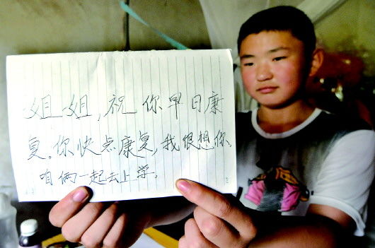 姐姐目前在當(dāng)?shù)蒯t(yī)院治療,他將最想對姐姐說的話寫在了紙上