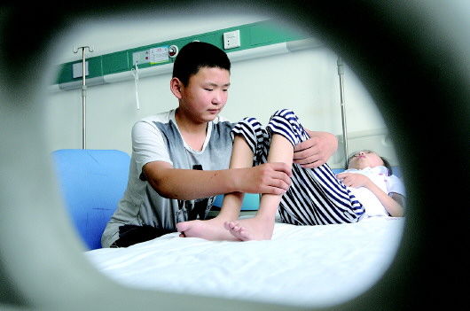 在醫(yī)院看望姐姐,他也沒忘為姐姐捏捏腳