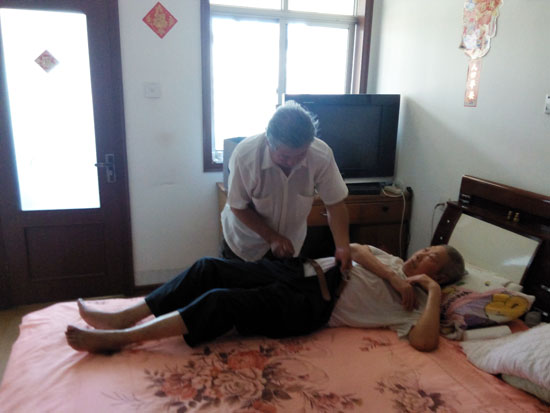 柴守富的叔叔今年91歲高齡,膝下無子無女。應邀來到他家已有幾年時間。他對年邁的叔叔照顧的比親生父母還上心。他經常說:“叔叔年輕時沒有孩子已經很失落了,不能讓叔叔的老年生活再有不快,我就是叔叔的兒子。”柴守富言行一致,幾年如一日,毫無怨言的贍養照顧,每天從幫叔叔穿衣開始,衣食住行,無微不至。妻子在醫院做透析時,柴守富利用妻子在醫院做檢查不需要自己在場的時間見縫插針的回家給叔叔穿好衣服,做好飯菜,喂叔叔吃飯。對高齡叔叔的飲食起居,柴守富格外上心。做飯變著花樣,每餐飯菜,燉的很爛很軟,餐餐必備一個湯,讓老人吃的舒服,容易吸收。和叔叔聊天時會問問老人想吃什么,想喝什么,蔬菜.蛋奶.魚肉.水果,每天營養搭配,盡力保持均衡。人歲數大了,身體里需要的東西肯定和年輕人不一樣,小麥、玉米、小米、高梁、蕎麥多吃。做米飯摻在米飯里。煮粥時放入紅小豆、綠豆、豇豆,改善味道,增加營養。或燉成豆餡,做成豆包。尤其綠豆,清熱解毒、消暑止渴。每到夏季,煮一鍋綠豆湯,放涼喝或熱飲,消暑解渴有營養。叔叔的腸胃隔天食用一個山雞蛋。胡蘿卜做成泥,苦瓜弄成雞蛋餅,為預防便秘,每周包兩次的芹菜餃子,刺激腸蠕動。木耳、紫菜湯經常出現在早餐的飯桌上,大蒜搗成泥、加點醋調胃口,洋蔥切的碎碎的炒雞蛋、西紅柿打成汁。一日三餐,餐餐上心。老人習慣保持的也很好,每天三餐餐后刷牙,每次柴守富都保持洗手間干爽,先擠好牙膏,杯子里倒好溫水,提醒著叔叔,該刷牙了。對叔叔穿的鞋子很是細心,要求舒適為主,必須防滑。買的每雙鞋子他自己先穿在腳上,走走試試,看合不合腳。老人91歲高齡,活動空間有限,為彌補活動量的不足,一有時間他就給叔叔按摩,推拿,從手指到腳底,力道適度的捶捶打打,疏通經絡。每晚的泡腳更是仔細,叔叔把腳放進水盆之前柴守富先把自己的腳放到水里試試水溫。問他為什么不用手試試?他說腳試水好。手覺得合適的水溫,再熱一些腳會更舒服。問他“65歲了,每天這么大的勞動量,天長日久,都怎么堅持的?”他憨厚的笑著說:“別人都忙著早早晚晚出去鍛煉身體,我的身體家門不用出就鍛煉了,還比他們每天多活動。不說別的,就說走路,我現在的步行速度有的小伙子都沒有我快。”妻子的飲食要求嚴格,叔叔的飲食也不含糊,小孫子還在長身體,是全家的希望,吃的喝的更是照顧有加。柴守富對老老少少盡心盡力,盡其所能。只要對家人好的,自己千方百計的想辦法做到。他所付出的辛勞,有目共睹。這樣照顧叔叔的侄子真不多見。自己的父母這么伺候,已是孝子,何況叔侄。